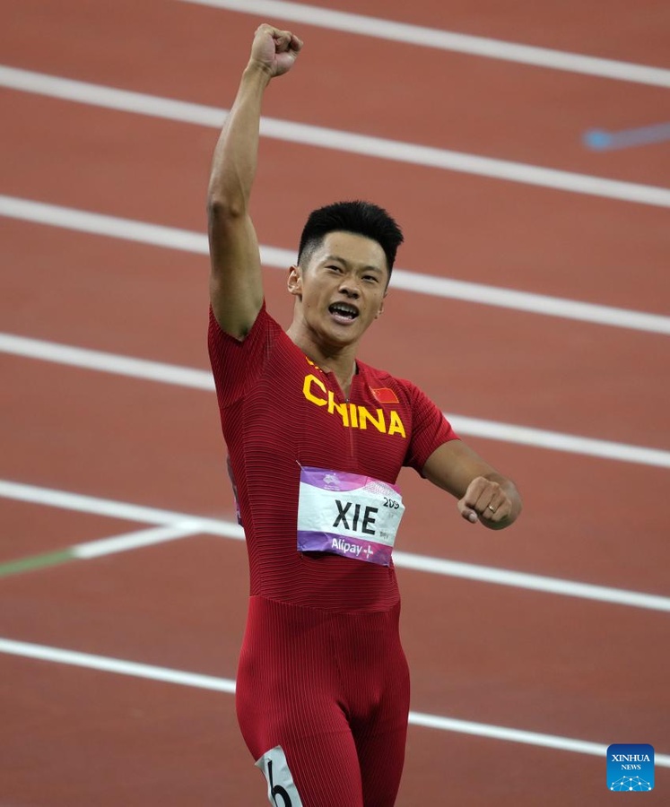 Cheered on by thousands of fans at the Hangzhou Olympic Sports Centre Stadium, Xie won the men’s 100 metres final on a night of surprises with Ogunode’s mishap and a turn-back-the-clock victory in the men’s 400 metres by 35-year-old Saudi Yousef Ahmed Masrahi.