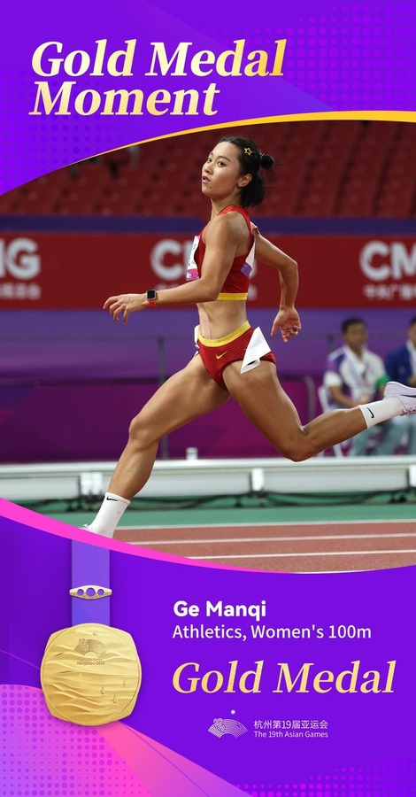 It was a sprint double for China with Ge Manqi winning the women’s 100m in 11.23. Singapore’s Shanti Pereira won the silver medal in 11.27 while Bahrain’s Saad Saeed Al-Khaldi took the bronze in 11.35.