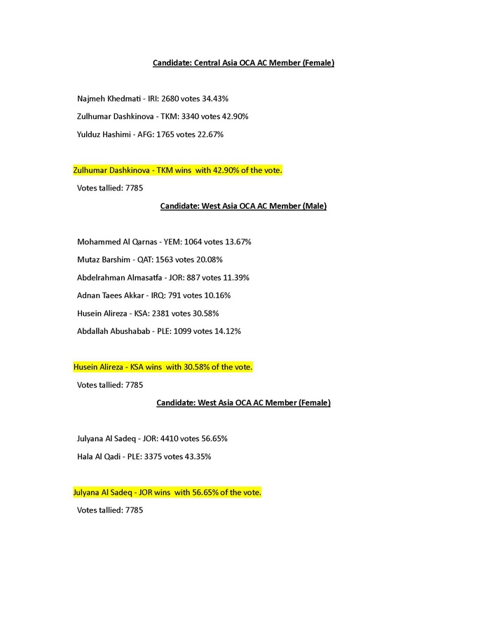 Zulhumar Dashkinova - TKM:3340 votes 42.90%