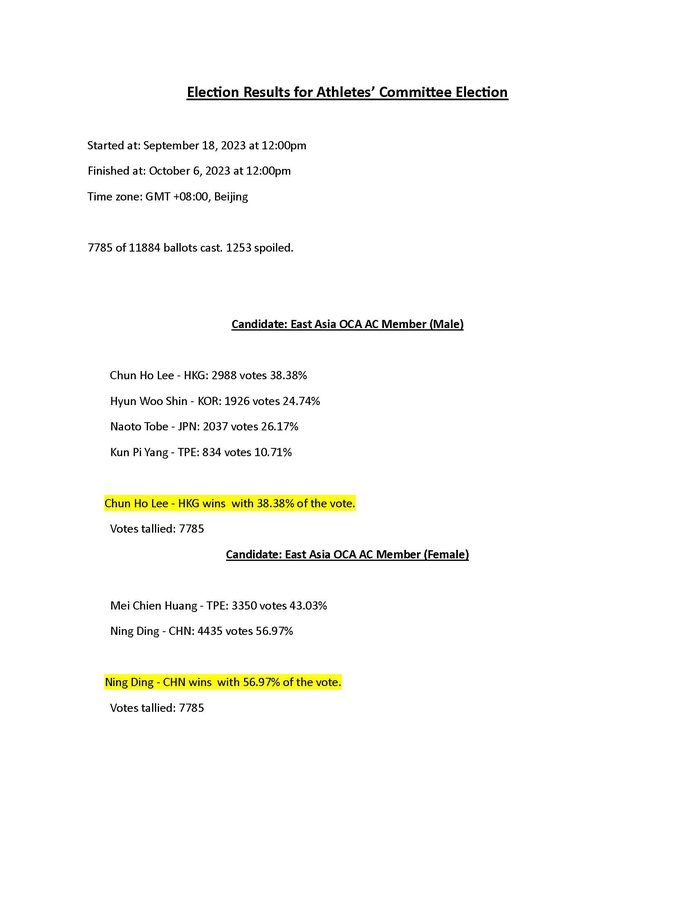 Chun Ho Lee – HKG wins with 38.38% of the vote
