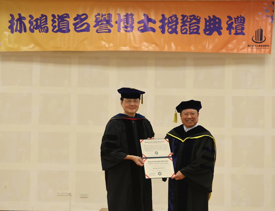 Mr. Lin expressed his gratitude, dedicating the Honorary Doctorate Degrees to his family and particularly to his mother, stating: "This honorary doctorate, I want to dedicate to my family, to my mother, and it is more suitable to be awarded to my mother."