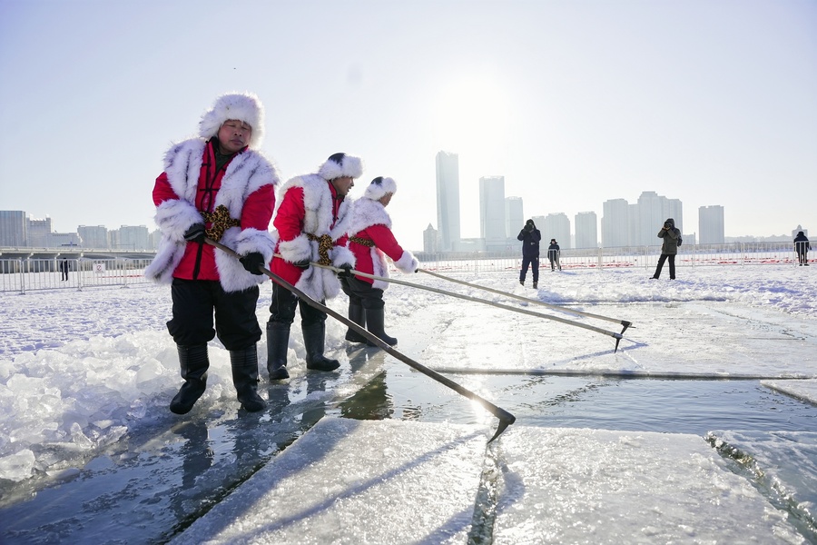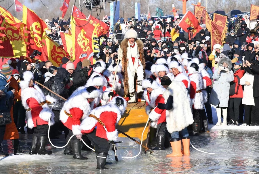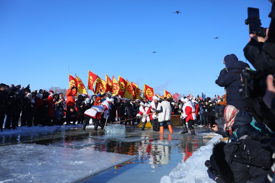 This year’s Ice Harvest Festival, themed “Harvesting the First Ice and Welcoming the Asian Winter Games,” combined the rich history of ice harvesting culture in the Songhua River basin with ice and snow sports and elements of the Asian Winter Games, which will be held in Harbin in 2025.