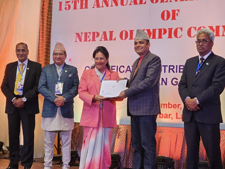 Following the AGM, the NOC honoured participants and winners at the Hangzhou Asian Games. Nepal was represented by 253 athletes in 29 sports and finished with one silver and one bronze medal.