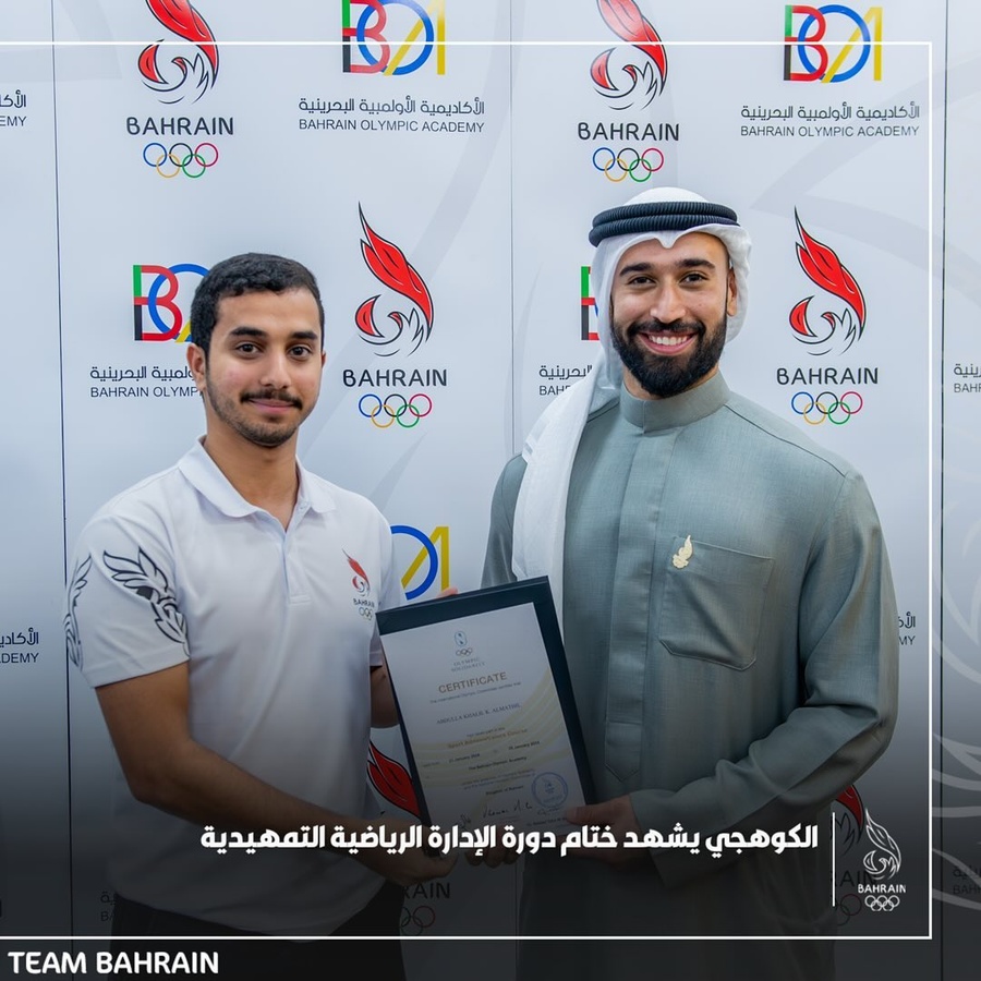 Bahrain Olympic Committee Secretary General Faris Mustafa Al-Kooheji and the Director of the Olympic Academy, Dr. Nabil Taha, were on hand for the closing ceremony where certificates were distributed to all participants.