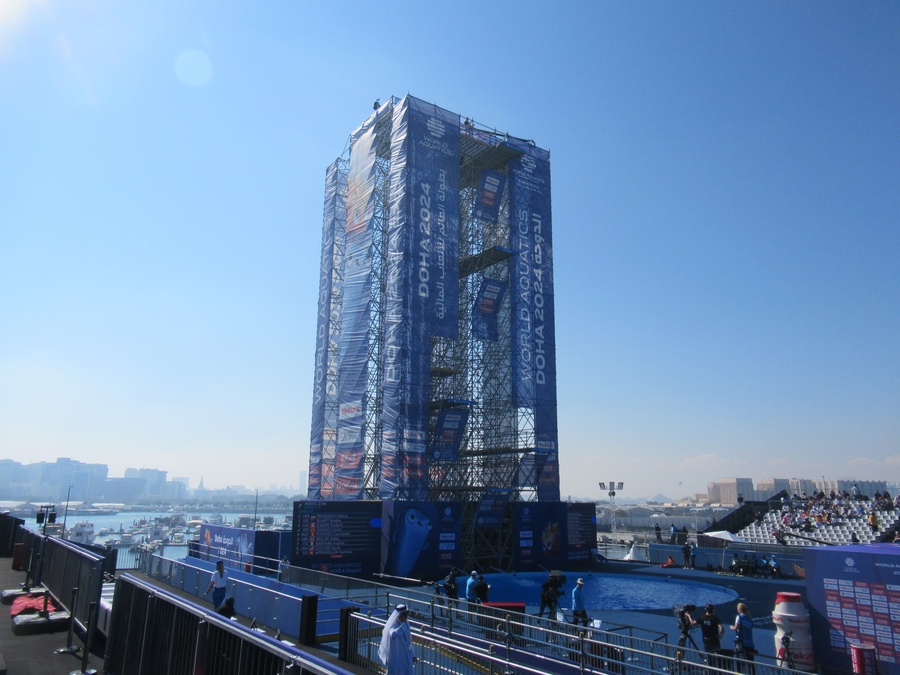 Doha, Qatar, February 13, 2024: Standing on top of the 27-metre platform, Korea’s Choi Byung-hwa is Asia’s lone representative - men and women - in the high diving competition of the World Aquatics Championships – Doha 2024.
