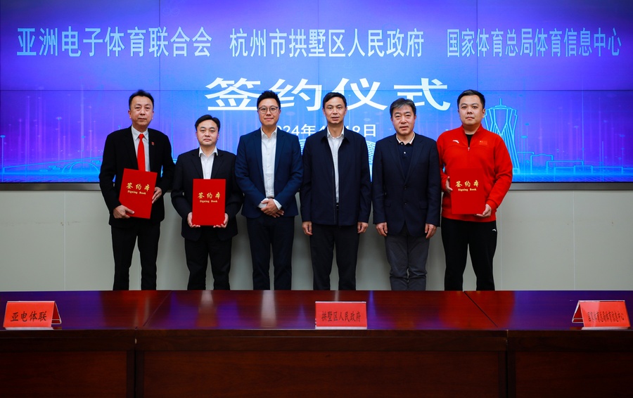 Hangzhou, China, April 23, 2024: The Asian Electronic Sports Federation (AESF), the China Sports and Information Centre (CSIC) and Gongshu District People's Government of Hangzhou City have signed a tri-party Memorandum of Understanding as part of the legacy of the 19th Asian Games.