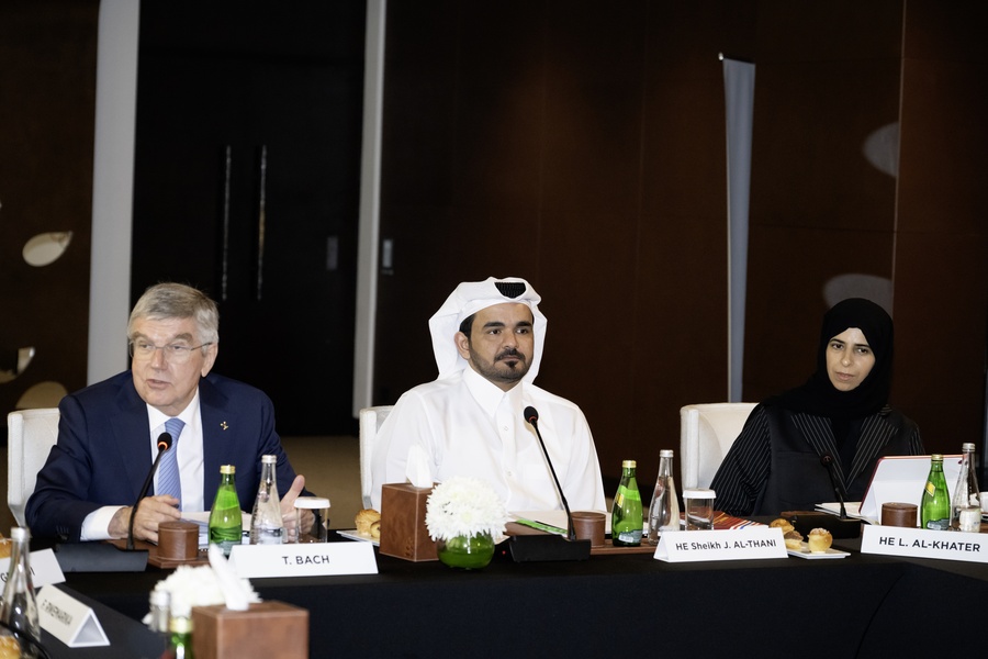 President Bach opened the meeting with a welcoming speech in which he praised Doha’s hosting and Qatar’s active role in supporting the foundation.
