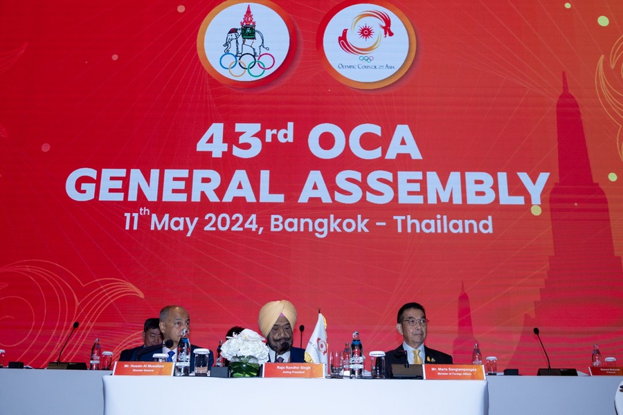 Bangkok, Thailand, May 11, 2024: The Acting President of the Olympic Council of Asia, Raja Randhir Singh, welcomed delegates from 45 National Olympic Committees to the 43rd OCA General Assembly at the InterContinental Hotel in Bangkok on Saturday.