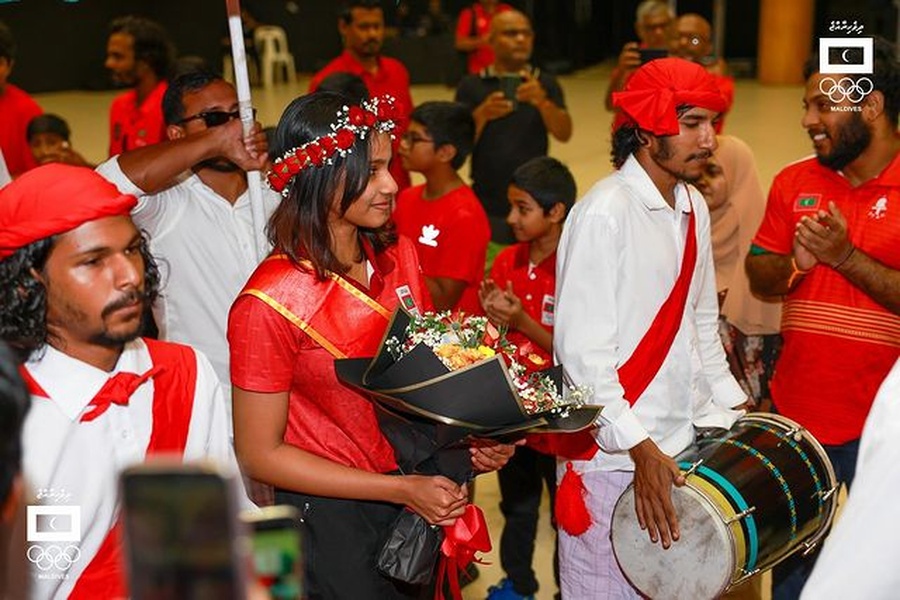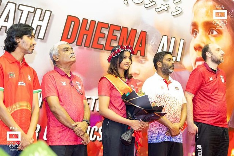 Officials from the National Olympic Committee of Maldives and the government were on hand to receive the 15-year-old Dheema, who won the women’s singles in the South Asian Regional Olympics Qualification tournament in Kathmandu, Nepal last week, to book her ticket to Paris.