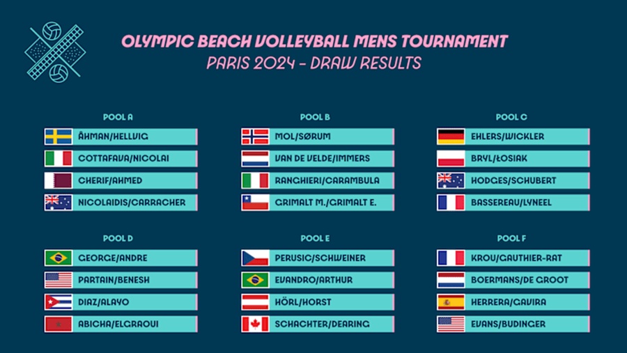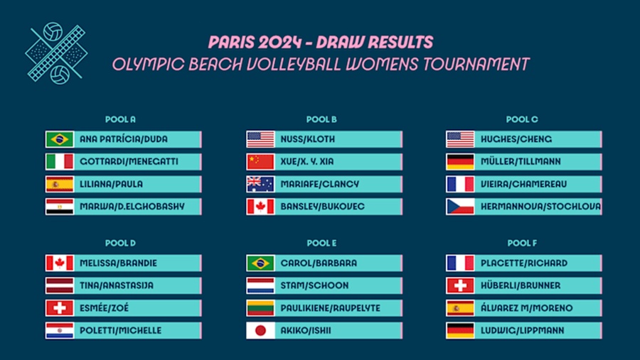 The competition formula for beach volleyball at the Paris Games will be the same as that of Tokyo 2020, with the 24 teams in each gender being split into six pools of four teams.
