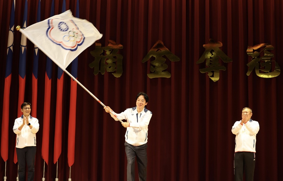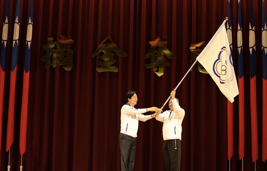 President Lai Ching-Te handed over the NOC flag to CTOC President and head of delegation Lin Hong-dow, who then presented it to the delegation's Chef de Mission, CTOC Vice President Chang Huan-cheng