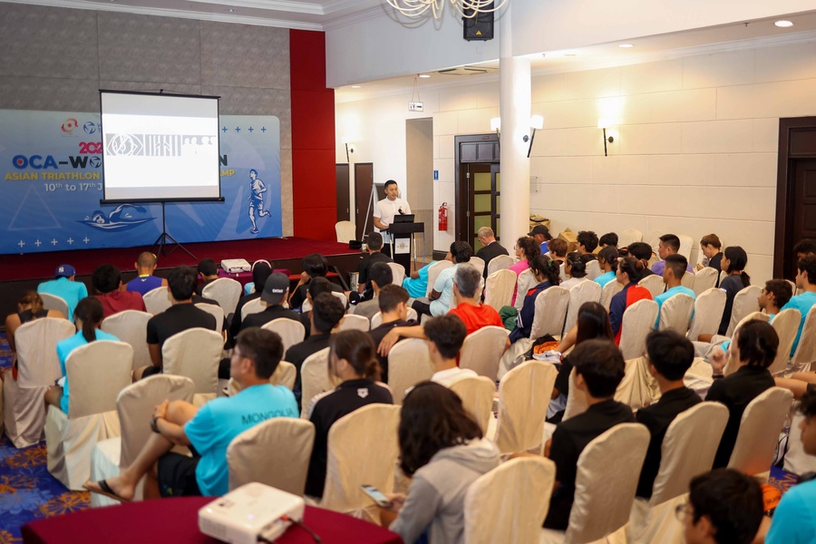 Jamyang Namgyal, Manager, Athletes Department, OCA conducted a presentation on the Prevention of Manipulation of Competition for the 73 triathletes and coaches from 25 Asian National Olympic Committees at the residential camp.