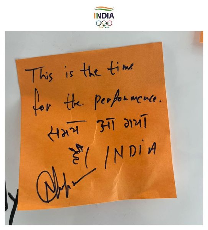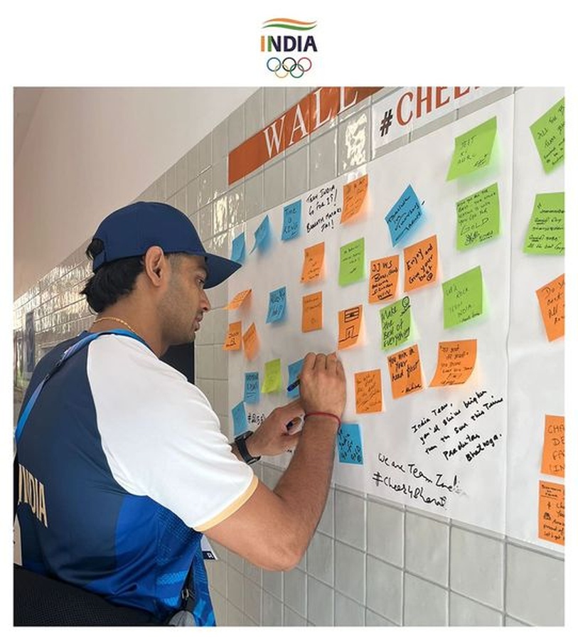 The 26-year-old Neeraj, the first Indian and Asian athlete to win an Olympic gold medal in javelin, also wrote an inspiring message for the Indian athletes on the Wall of Positivity.