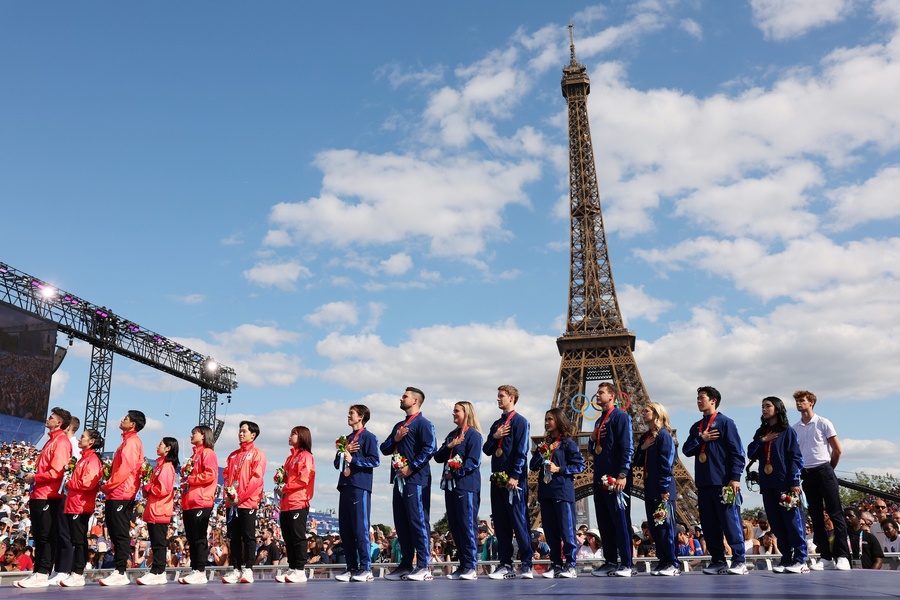 Paris, France, August 7, 2024: The American and Japanese figure skating teams have finally received the gold and silver medals, respectively, from the Beijing 2022 Winter Olympics at a ceremony in Champions Park in Paris on Wednesday.