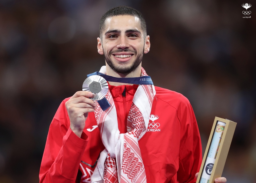 The Jordan Olympic Committee posted: “Silver Zaid! From the Grand Palace in Paris, Jordanian taekwondo champion Zaid Mustafa shines and attains Olympic glory and presents Jordan with its first medal at the Paris Olympics and its historic fourth Olympic medals.