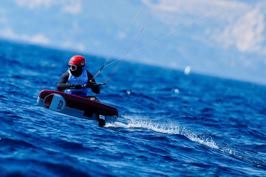 Paris, France, August 10, 2024: Singapore’s teenage sailor Maximilian Maeder made history by winning a bronze medal in the Men's Kite event, bagging Singapore sailing's first ever Olympic medal.