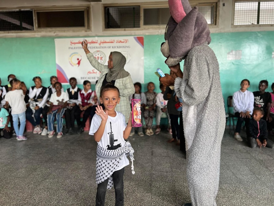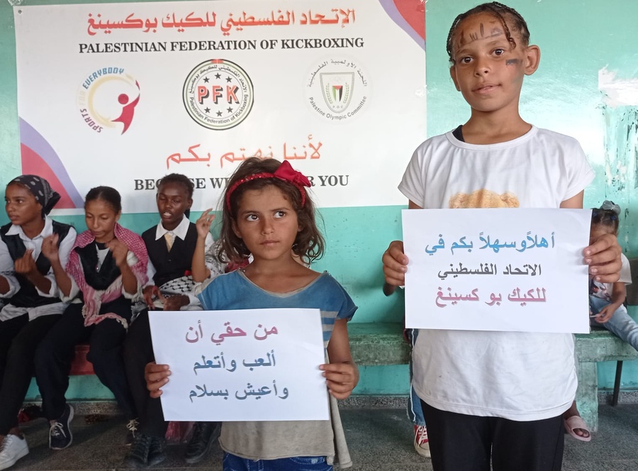 Jerusalem, Palestine, October 8, 2024: The Palestine Olympic Committee reports that the Palestinian Federation of Kickboxing organised a recreational event for children in the city of Deir al-Balah, south of the Gaza Strip.
