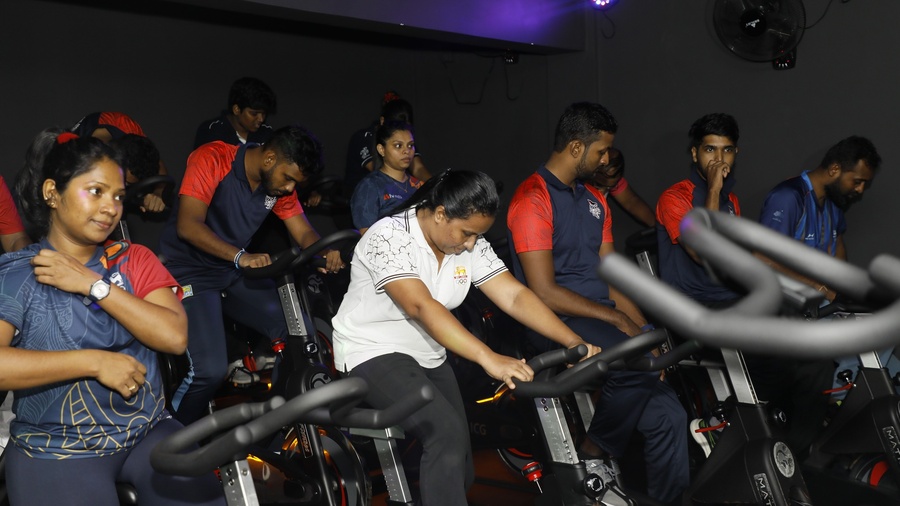 At the NOC headquarters in Colombo, a number of participants including NOC staff, engaged in a dynamic fitness session that included spinning, stretching and other practices.