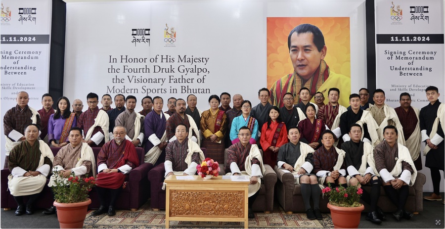 Thimphu, Bhutan, November 12, 2024: In a fitting tribute to His Majesty the Fourth Druk Gyalpo, the Bhutan Olympic Committee and the Ministry of Education and Skills Development signed a Memorandum of Understanding on Monday, November 11.