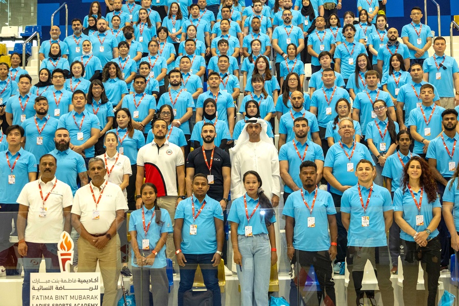 Fahed Al-Shamsi, General Secretary of the JJAU, and Wissam Trkmani, OCA’s Director of Development and NOC Relations, were among the 123-strong coaches and referees from 36 Asian National Olympic Committees, who all gave a thumbs-up and a resounding ‘O-C-A’ shout as the five-day camp at the Sheikha Fatima Bint Mubarak Academy got underway.