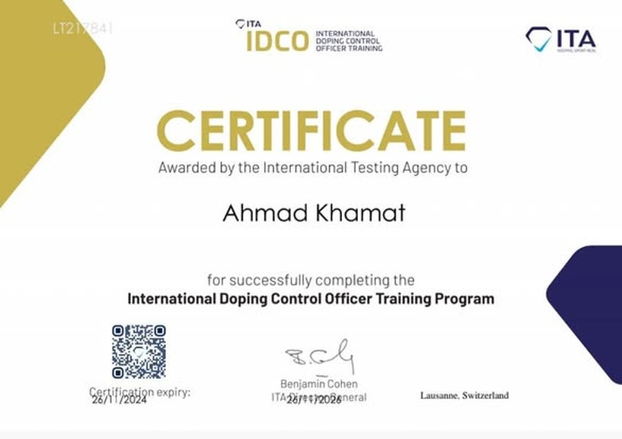 Hashim and Khamat, both members of the Iraq NOC anti-doping committee, received certificates from the ITA which will now allow them to officiate as doping control officers at international tournaments.