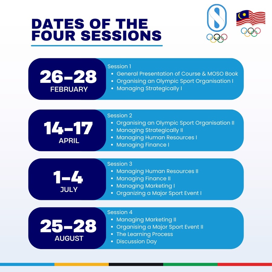 The course will take place over four sessions spanning 15 days from February to August and will be conducted in collaboration with Olympic Solidarity.