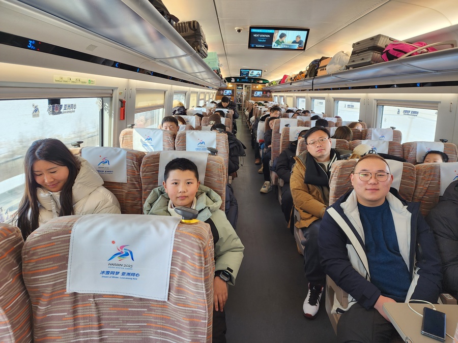 Liu and his family – wife Wang and son Stone – were part of the large crowd on the new express bullet train service from Harbin to Yabuli on Wednesday, February 5. The 200-kilometre trip took less than an hour.
