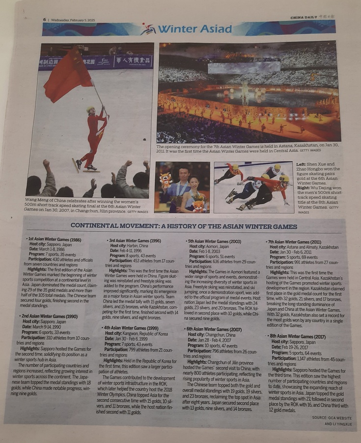 The China Daily published the first edition of Winter Asiad – the official publication for the 9th Asian Winter Games Harbin 2025 – on Wednesday, February 5.
