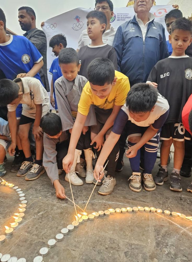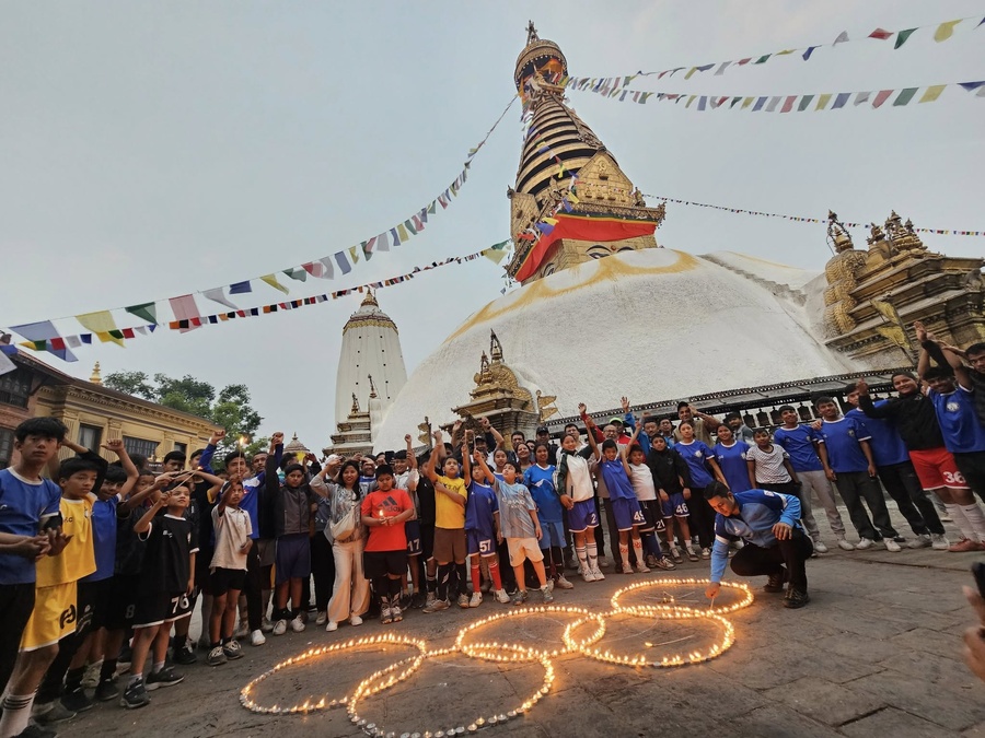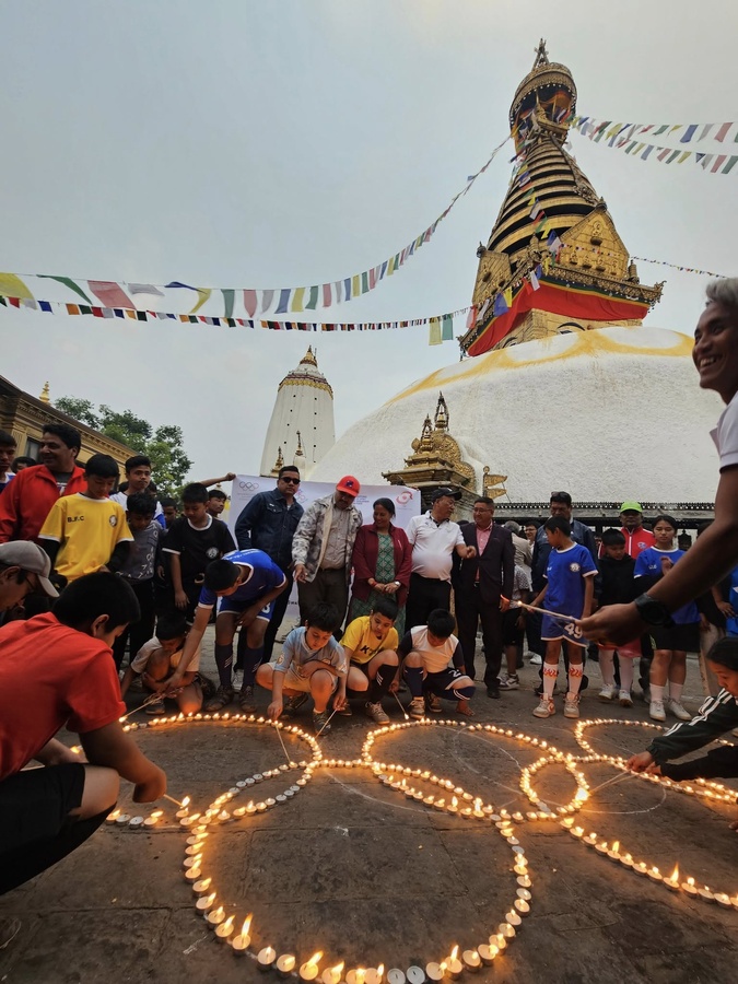 Kathmandu, Nepal, April 10, 2025: The Nepal Olympic Committee held a special Lighting Programme at the iconic Swoyambhu Temple on Sunday, April 6 to mark the International Day of Sport for Development and Peace.