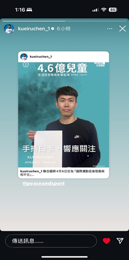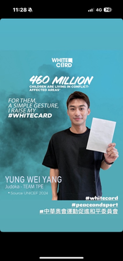 Following the precedent of previous years, the Peace through Sport Committee of the Chinese Taipei Olympic Committee fully supports and encourages the participation of athletes and coaches to join the #WhiteCard campaign.