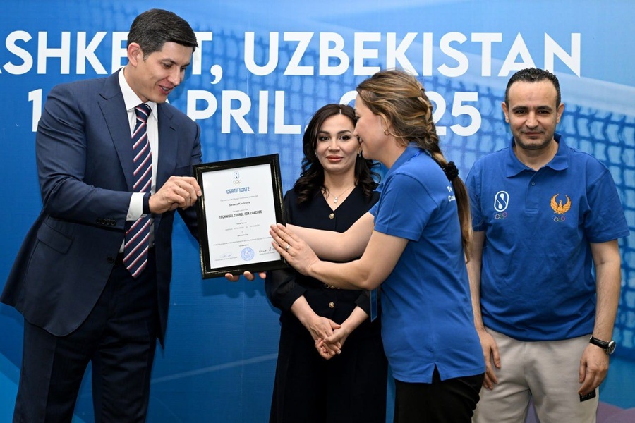Tashkent, Uzbekistan, April 14, 2025: Senior officials of the National Olympic Committee of Uzbekistan presented certificates for participants in a nine-day technical course for table tennis coaches held under the auspices of Olympic Solidarity in Tashkent last week.