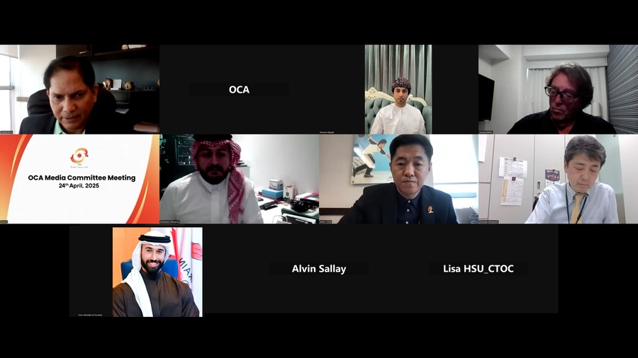 Kuwait City, Kuwait, April 24, 2025: The Chair of the OCA Media Committee, Faris Al Kooheji of Bahrain, conducted an on-line meeting on Thursday, April 24.