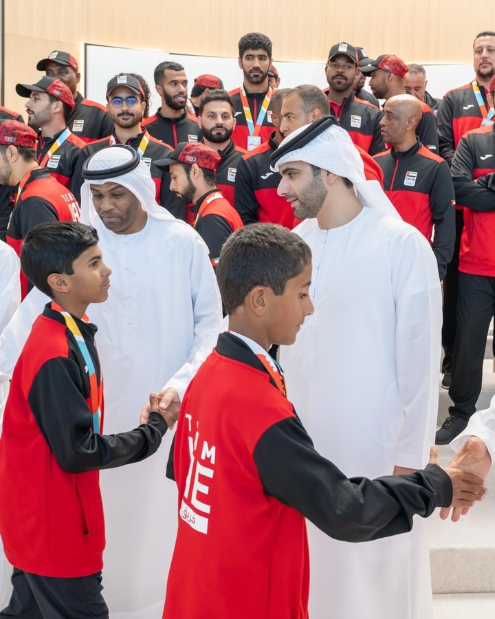 Sheikh Mansour praised the UAE contingent for returning home with its best-ever performance, winning a total of 23 medals, including eight gold, and proudly raising the national flag on an international stage.