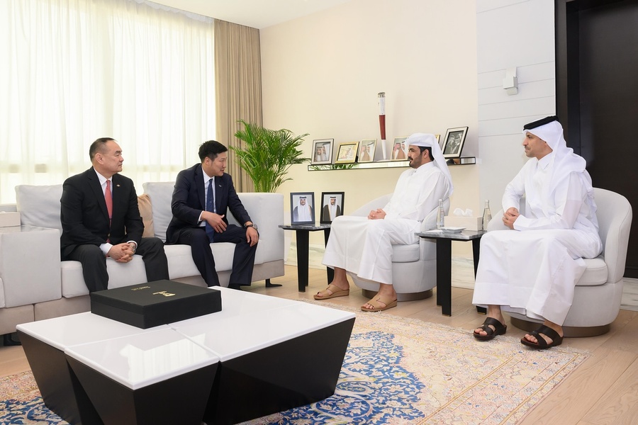 Doha, Qatar, May 22, 2025: The President of the Qatar Olympic Committee, HE Sheikh Joaan bin Hamad Al-Thani, met with Battushig Batbold, President of the Mongolian National Olympic Committee at the QOC headquarters in Doha on Wednesday, May 21.