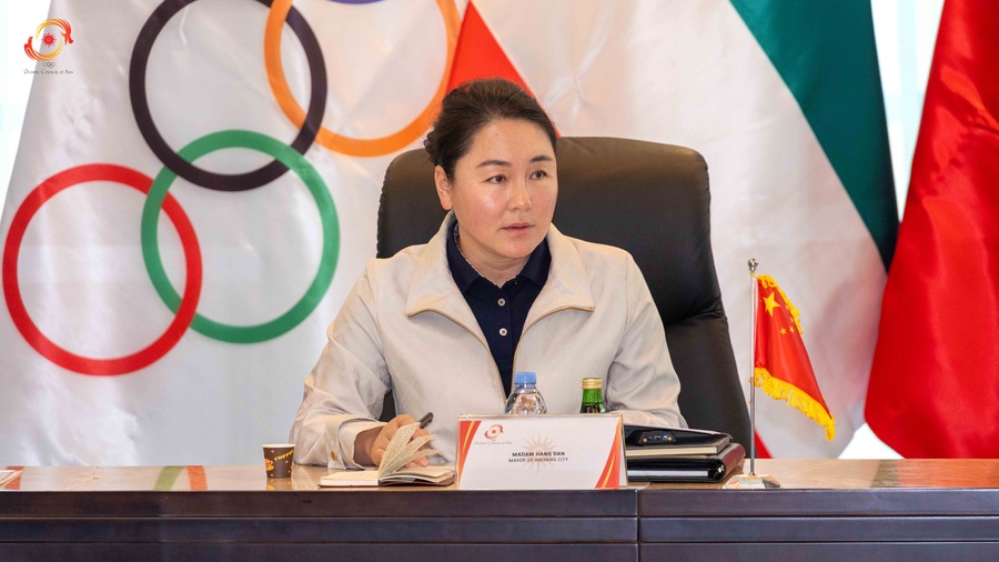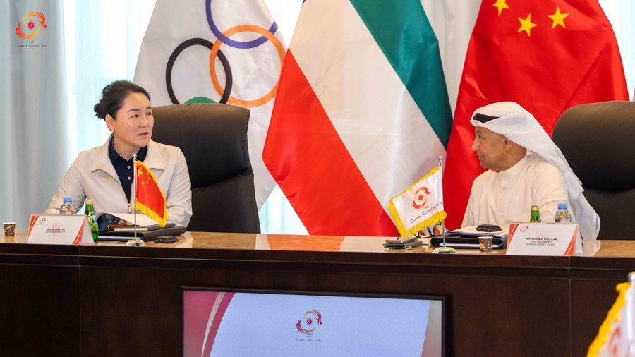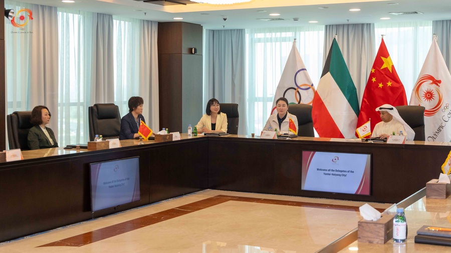 Kuwait City, Kuwait, May 26, 2025: The Director General of the Olympic Council of Asia, Husain Al Musallam, received the Mayor of Haiyang City, Madam Jiang Dan, at the OCA Headquarters in Kuwait on Monday, May 26.
