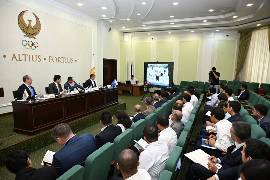 Sports Minister Adham Ikramov chaired the meeting which was also attended by officials of national sports federations and associations. Representatives from various departments and sports institutions from all regions also joined in online.