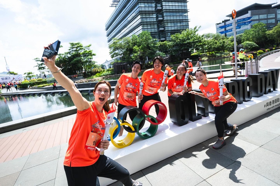 The Torch Relay Run was conducted in groups of three, with each group receiving a torch for the relay, offering participants an experience of Olympic values through passing the torch on. Each participating group could take home the torch upon completion. Joining fellow runners in the torch relay run were Shek Wai Hung (gymnastics) and Lee Ka Man (rowing), torchbearers at the 2008 Beijing Olympic Games; Rico Cheung (athletics) and Sally Tang (lacrosse), who were featured in the 2025 Olympic Day promotional video, and Stephanie Au (swimming), the inaugural SF&OC Olympic Ambassador.