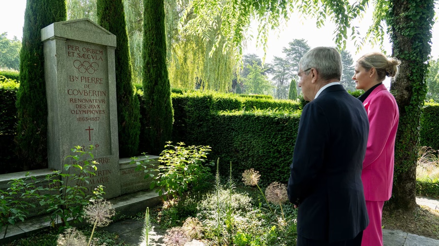 “Gratitude, above all, to our beloved founder Pierre de Coubertin — whose body rests just a stone’s throw from here, and whose heart lies in Ancient Olympia. To him we owe everything. I am sure he is watching us today from his Olympic heights, with that familiar smile, and that he feels content to see his – and our – Olympic Movement flourishing, true to his vision and more relevant than ever.”
