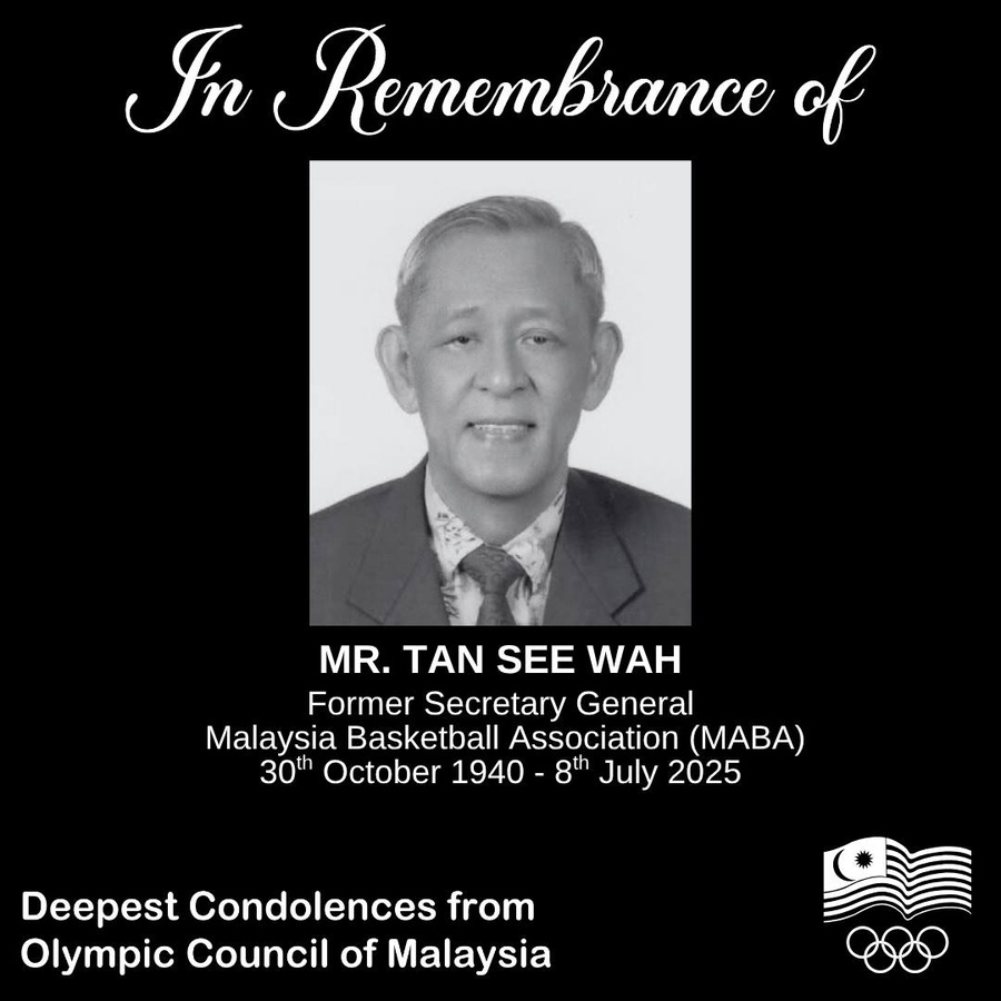 Kuala Lumpur, Malaysia, July 10, 2025: The Olympic Council of Malaysia reports that basketball pioneer Tan See Wah passed away on Tuesday, July 8. He was 85.