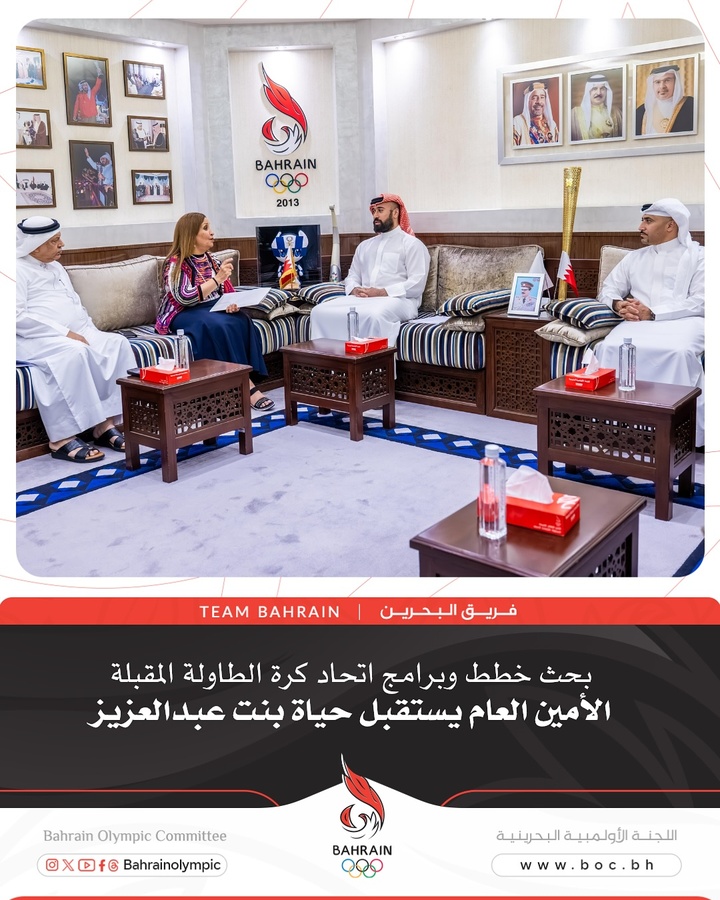 Manama, Bahrain, July 16, 2025: The Secretary General of the Bahrain Olympic Committee, HE Faris Mustafa Al-Kooheji, received the President of the Bahrain Table Tennis Association, Shaikha Hayat bint Abdulaziz Al Khalifa, at the BOC headquarters on Monday, July 14.