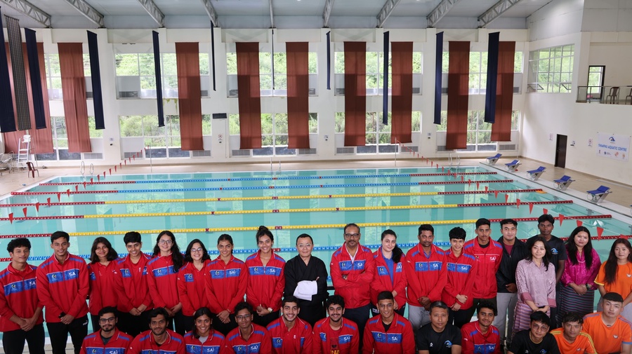 Thimphu, Bhutan, July 24, 2025: A delegation from the Bhutan Olympic Committee led by Secretary General Sonam Karma Tshering visited an ongoing High Altitude Training Camp at the Thimphu Aquatic Centre on Monday, July 21.