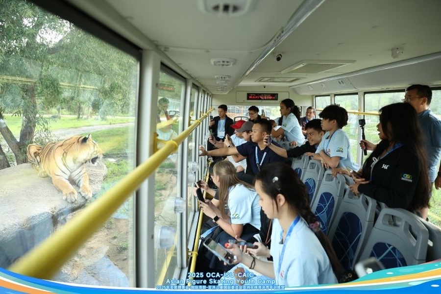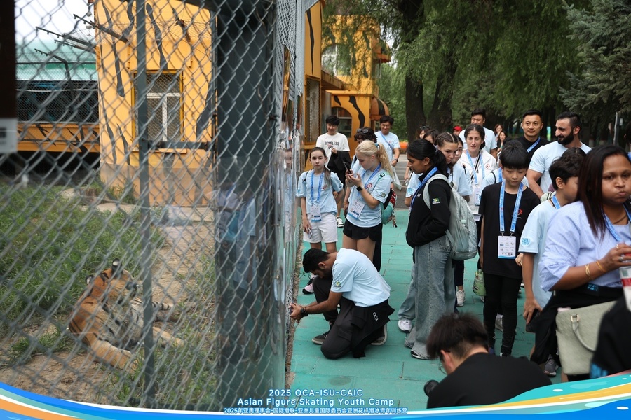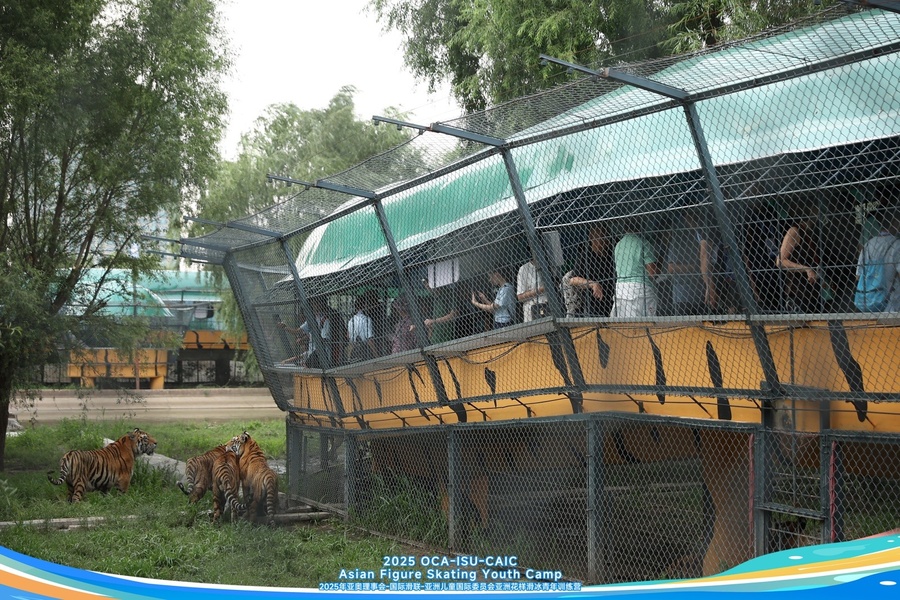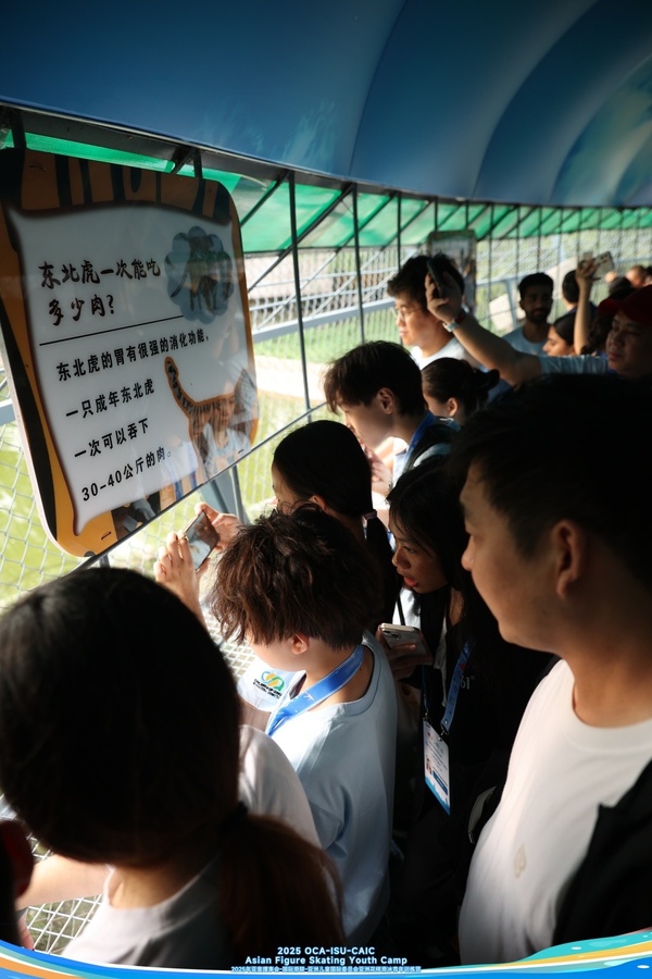 In the second timeout from their lessons, on and off ice, athletes and coaches at the Asian Figure Skating Youth Camp were taken to the Harbin Siberian Tiger Park on Friday, August 15.