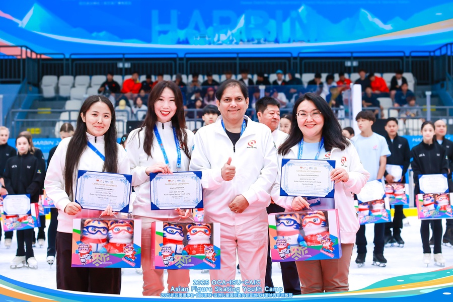 Speaking at the closing ceremony for the OCA-ISU-CAIC camp at the Harbin Ice Hockey Arena on Monday, August 18, Tiwari noted: “The 10-day journey is at an end and all of us at the OCA feel immense pride at what you have achieved.