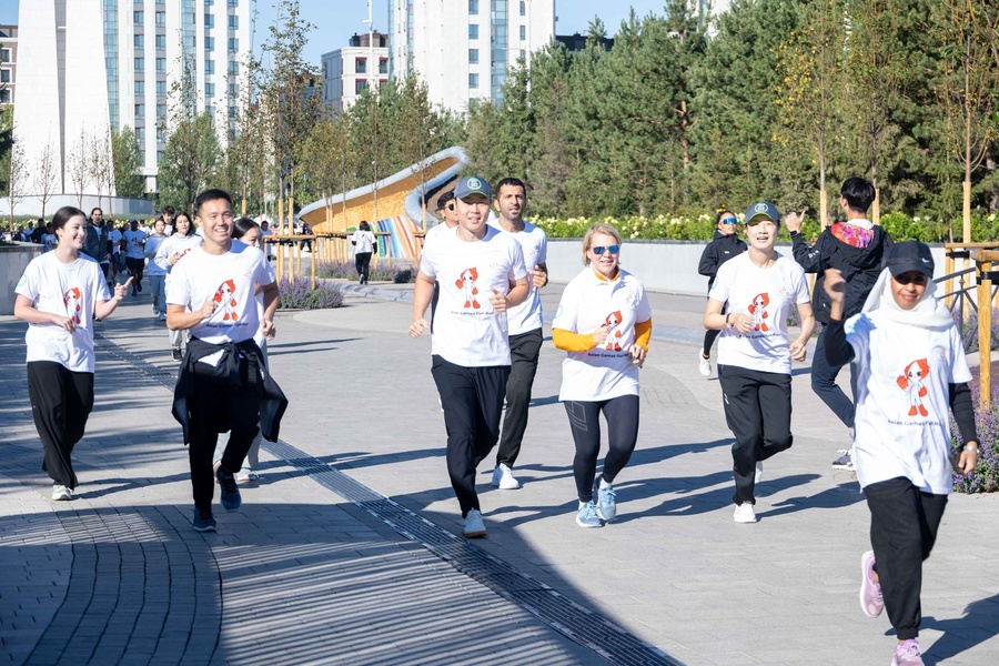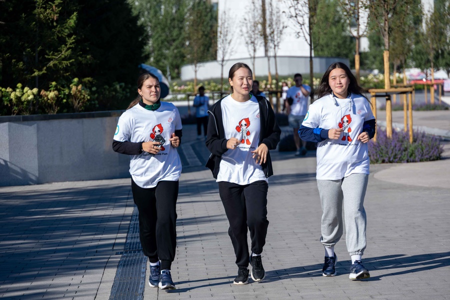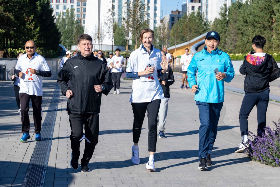 It was an early start for delegates from the 6th OCA/OS Athletes Forum, who joined the ‘Asian Games for All’ promotional campaign jointly organised by the OCA and the 20th Asian Games organising committee, AINAGOC, in Astana’s Central Park, a 104-hectare green space with a river flowing through it.