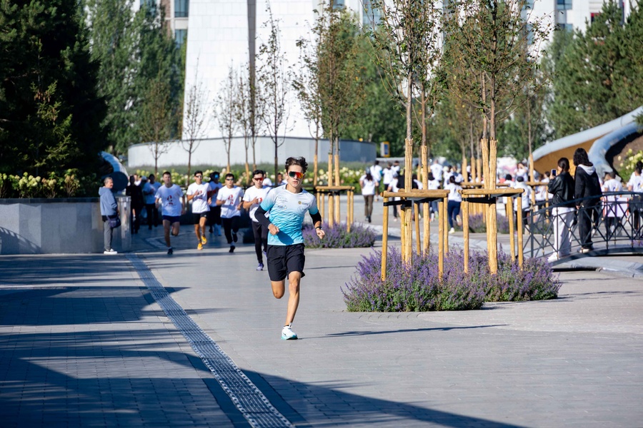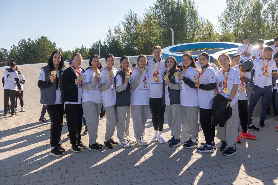 Astana, Kazakhstan, September 3, 2025: Students from a number of schools in the Kazakh capital Astana mingled with a number of visiting athlete representatives at the 7th edition of the Aichi-Nagoya Asian Games Fun Run on Wednesday, September 3.