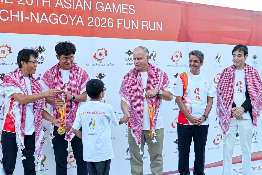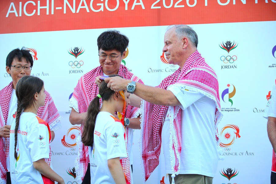 Amman, Jordan, September 13, 2025: HRH Prince Faisal bin Al Hussein, President of the Jordan Olympic Committee, got into the swing of things as he participated in the Aichi-Nagoya 2026 Asian Games Fun Run in Amman on Saturday, September 13.