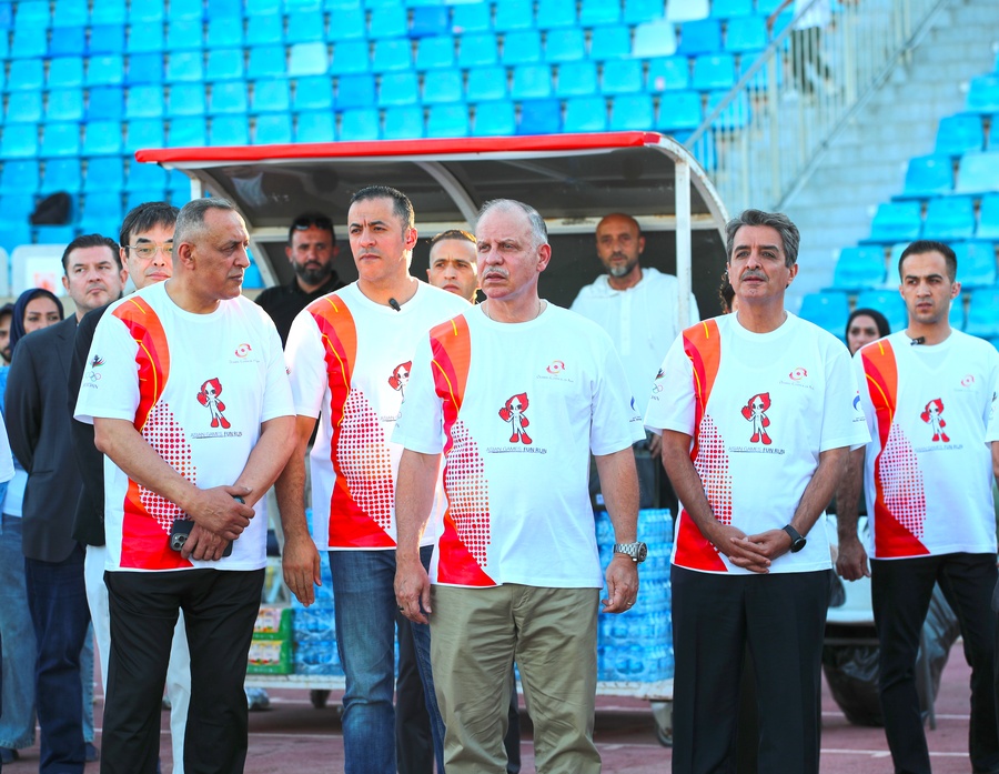 Prince Faisal probably walks more during his morning exercise, but in a show of solidarity for the Aichi-Nagoya Games, the JOC President walked two full laps – 800 metres – around the pitch at the Amman International Stadium, the country’s premier footballing venue.