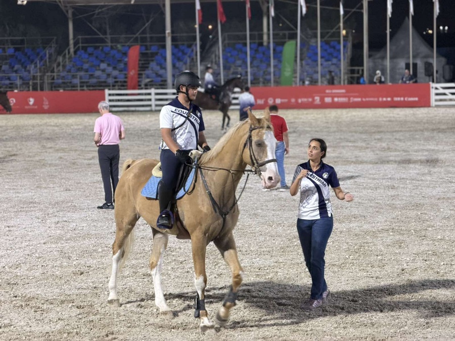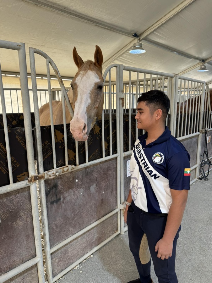 Phyo Kyaw Myint Than, the only athlete from Myanmar in Bahrain, participated in equestrian show jumping event, but he failed to finish on his borrowed horse, stallion Mano Kinsky.