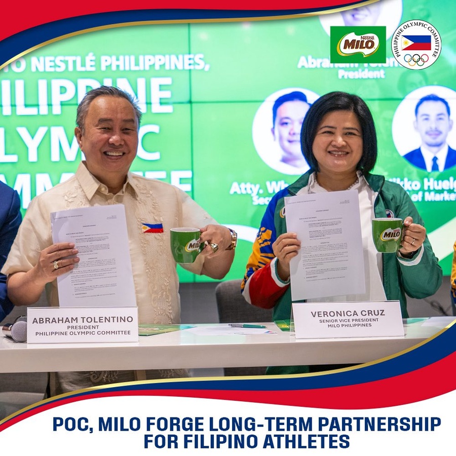 POC President Abraham Tolentino formally acknowledged these collaborations during two different ceremonies held this week – first with the country’s leading choco-malt drink MILO renewing a long-term partnership, and then with Toyota Motor Philippines Corporation (TMP).