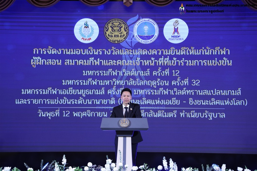 Bangkok, Thailand, November 20, 2025: The Minister of Tourism and Sport of Thailand, Atthakorn Sirilathayakorn, presided over a prize money presentation to Thai athletes who achieved outstanding results from four major sporting events in 2025, including the 3rdAsian Youth Games in Bahrain.